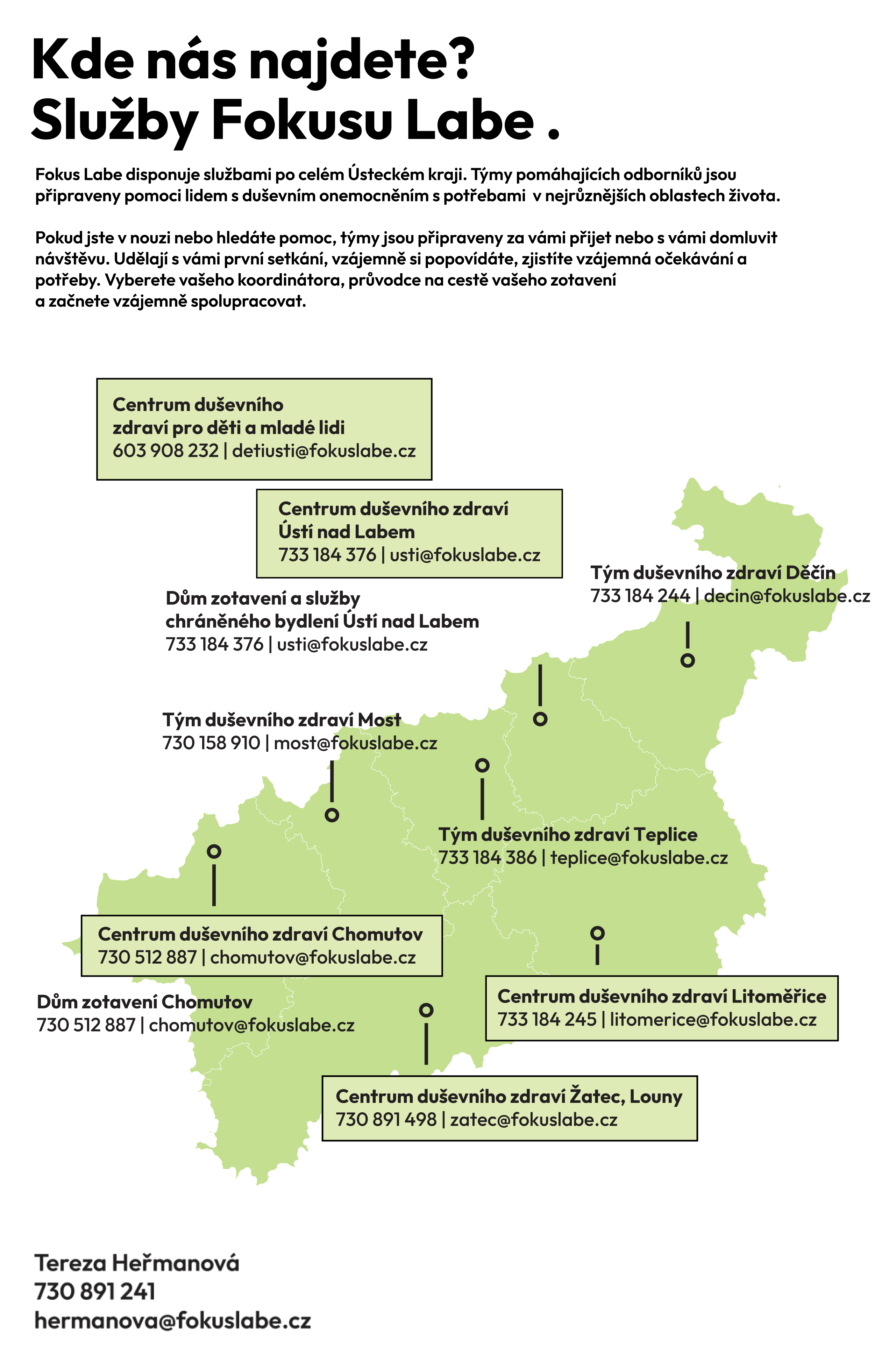 Naše zdravotní týmy najdete napříč Ústeckým krajem – například v Ústí nad Labem, Teplicích, Děčíně, Chomutově, Litoměřicích a dalších městech.