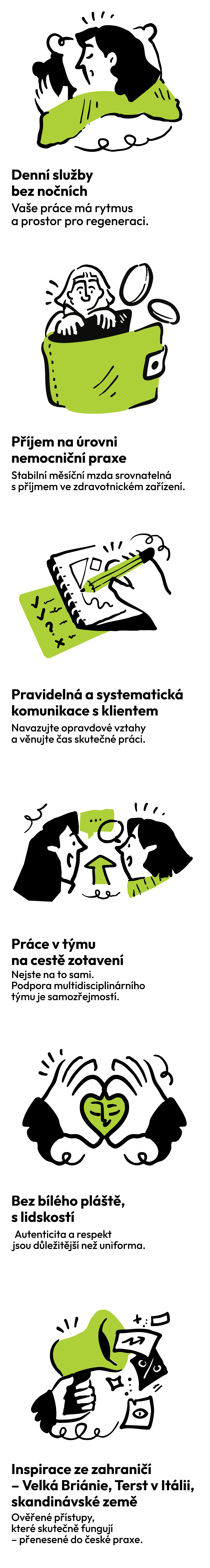 Nabízíme 25 dní dovolené ročně a 5 placených sick days, protože víme, že k dobré péči o druhé patří i čas na odpočinek a vlastní zdraví.