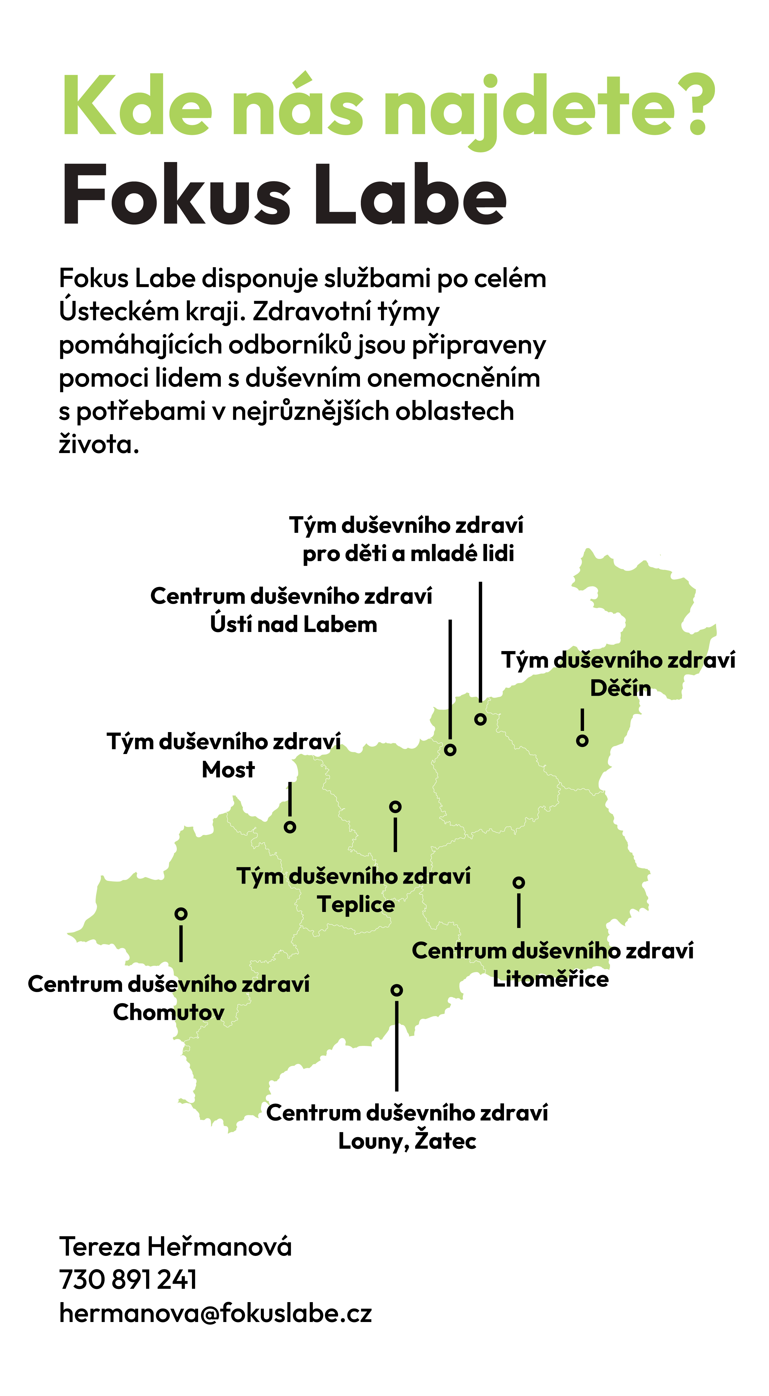 Naše zdravotní týmy najdete napříč Ústeckým krajem – například v Ústí nad Labem, Teplicích, Děčíně, Chomutově, Litoměřicích a dalších městech.